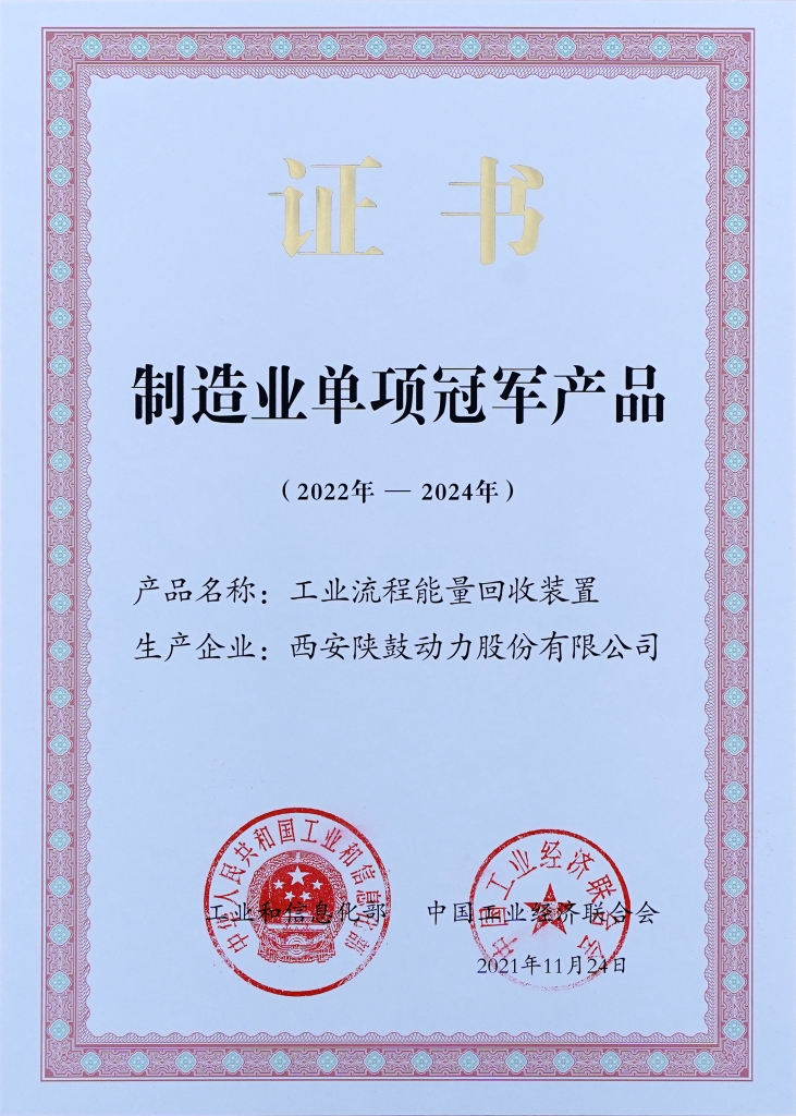 • 2021-工業(yè)流程能量回收裝置榮獲制造業(yè)單項冠軍產(chǎn)品