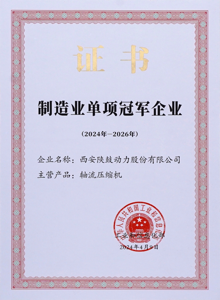 • 2024-軸流壓縮機制造業(yè)單項冠軍企業(yè)(2024——2026)